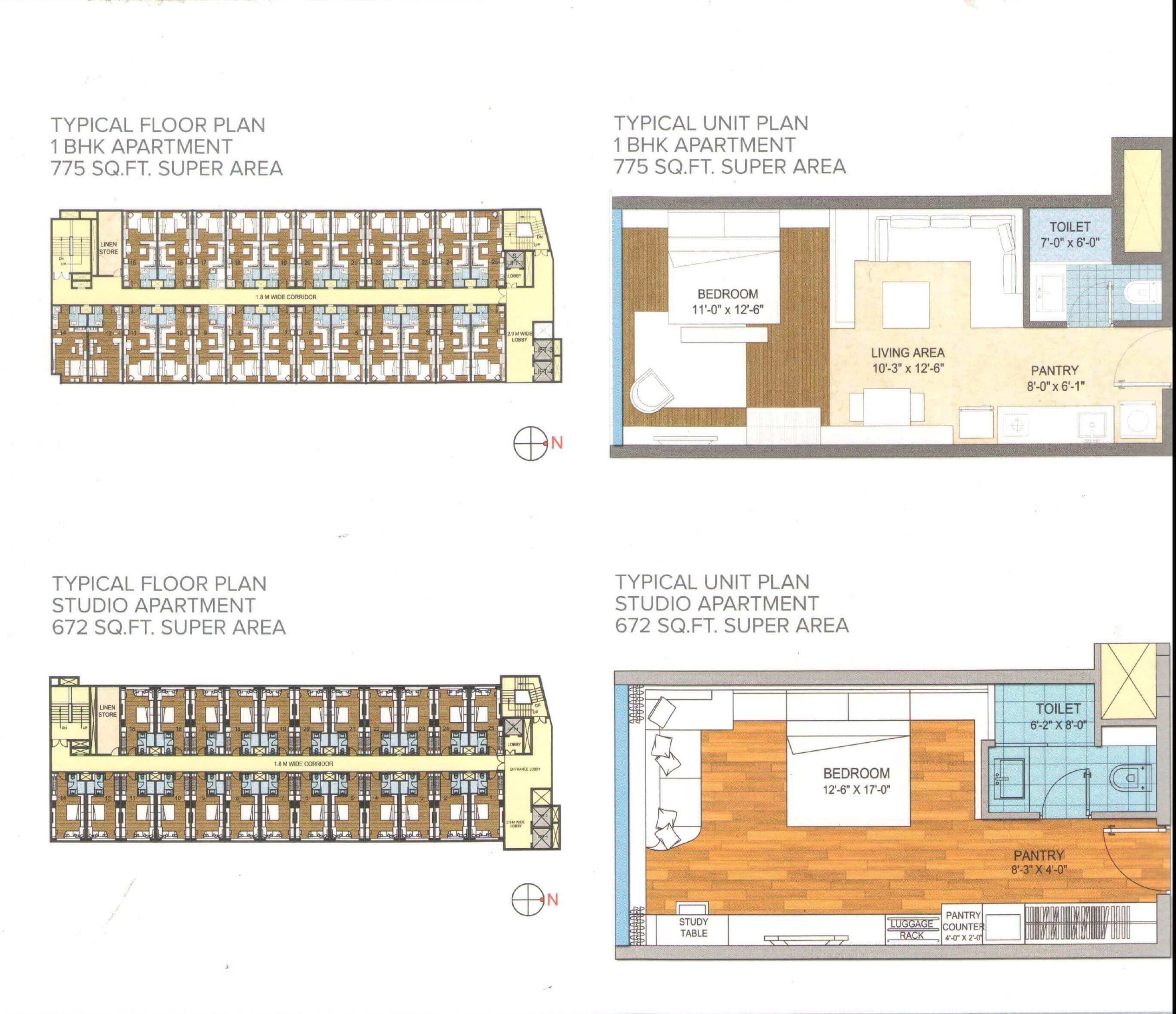2 BHK Apartment Sizes (300 - 775 sq. Ft. sq. ft.)