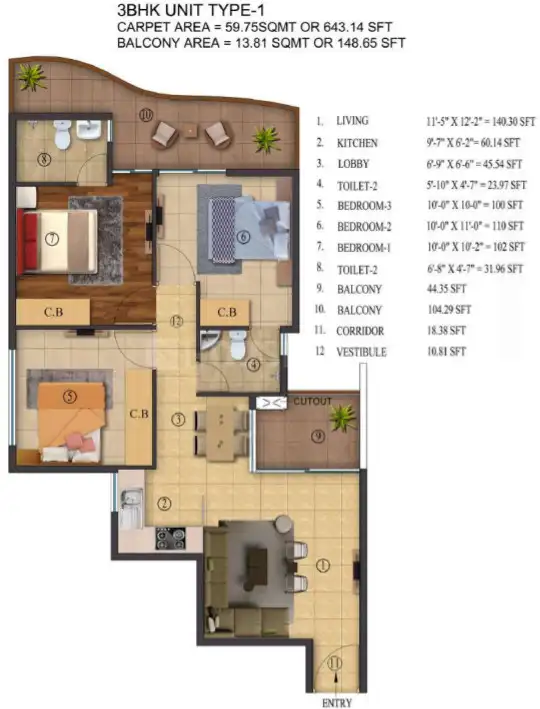 -468.55 - 641.42 sq.ft.-643.14 - 645 sq.ft.------